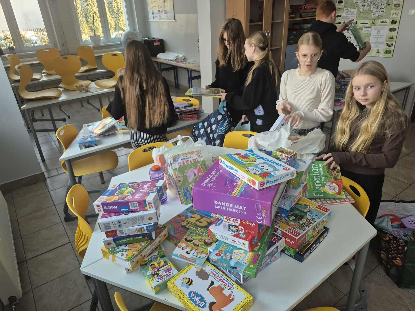 Oprócz naszej szkoły zbiórkę zorganizowały również ZSP w Ciasnej oraz SP w Zborowskiem. Chęć pomocy, nie tylko naszej szkoły, może opisać jedynie zdjęcie ilości zebranych przedmiotów.