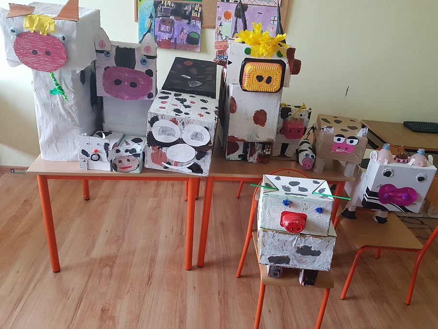 klasy trzecie miały za zadanie wykonać przestrzenną krowę Matyldę.