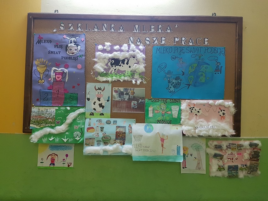 W ramach projektu "Szklanka mleka", w klasach I-III zorganizowano minikonkurs, w którym uczniowie mieli za zadanie przedstawić w formie plastycznej lub technicznej prace na określony temat.