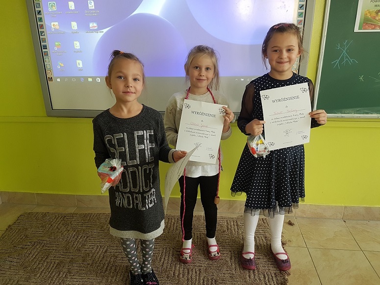 Wszystkie klasy wykonały naprawdę piękne prace,które teraz zdobią gazetkę szkoły w Wędzinie. Dodatkowo, autorom najciekawszych prac wręczono dyplomy i małe, mleczne upominki.