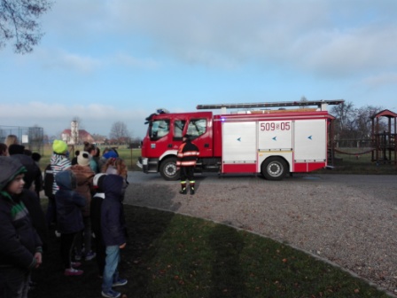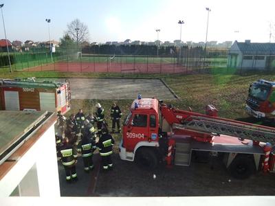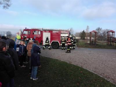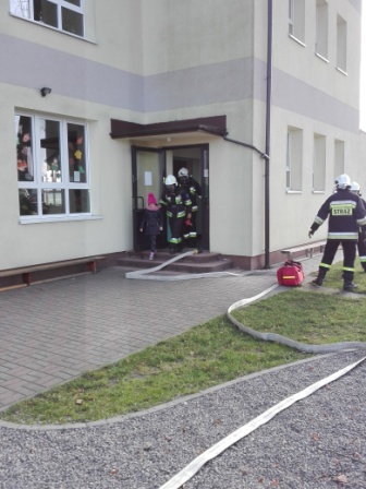 Kiedy w szkole zabrzmiały trzy alarmowe dzwonki uczniowie wraz z nauczycielami wybiegli przed budynek. Za chwile na syrenach alarmowych przyjechały trzy wozy strażackie. Strażacy w maskach gazowych przeszukali budynek w poszukiwaniu osób, które w całym zamieszaniu celowo szkoły nie opuściły. Troje uczniów, którzy zostali w budynku zostało znalezionych na piętrze szkoły w klasie. Straż za pomocą drabiny strażackiej opuściła ich na boisko szkolne. Druga grupa strażaków rozciągnęła sprzęt przygotowany do ugaszenia pożaru. Cała symulacja wyglądała bardzo realistycznie, a zaskoczeni uczniowie myśleli, że w szkole naprawdę wybuchł pożar. Po zakończonej akcji ratowniczej wszyscy wraz ze strażakami udaliśmy się do szkoły by omówić całą sytuację. Funkcjonariusze straży opowiedzieli jak należy zachować się w sytuacji zagrożenia, co kolejno należy zrobić by cały proces przebiegł bezpiecznie.