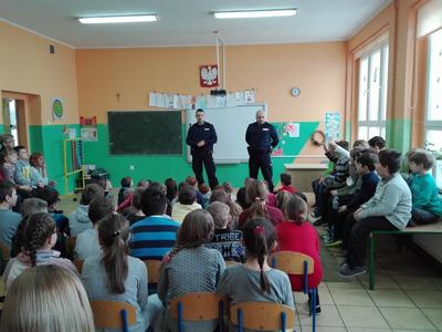 W trosce o bezpieczeństwo naszych wychowanków podczas wypoczynku w czasie ferii zimowych zorganizowano w szkole spotkanie z funkcjonariuszami policji, profilaktykiem KPP w Lublińcu sierż. sztab. Michałem Sklarczykiem oraz dzielnicowym Sierakowa Śląskiego st. asp. Tadeuszem Szymańskim.