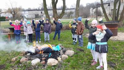 Wiosna zawitała do naszej szkoły! Uczniowie kl.1-3 barwnym pochodem wyruszyli na ostatni spacer z Marzannami. Każde dziecko niosło kolorowe paski bibuły – na znak przybyłej właśnie wiosny. Uczniowie ubrani na kolorowo pomagali przegonić mroźną Zimę śpiewając wiosenne piosenki i przygotowując wiosenne śniadanie. Pora by schować rękawiczki i czapki na dno szuflady i przygotować się na cieplejsze, wiosenne dni.