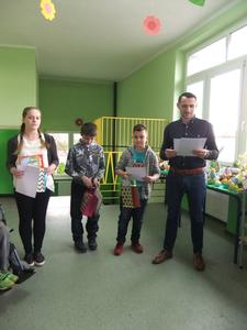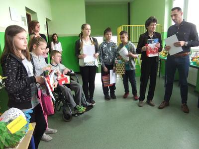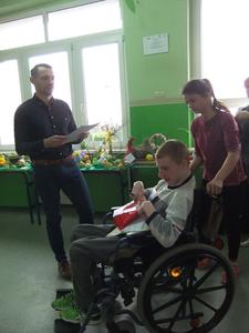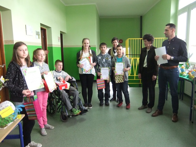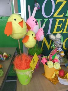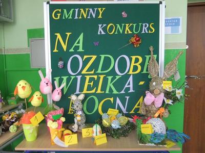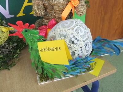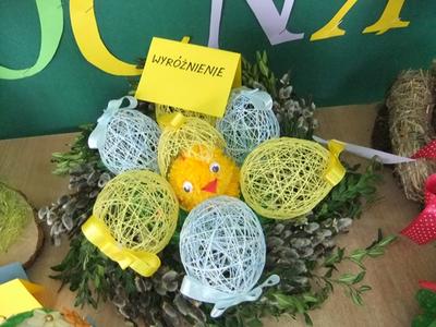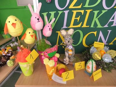 Prace konkursowe zostały wystawione na kiermaszu wielkanocnym organizowanym w szkole w Wędzinie. Na kolorowym stole można znaleźć to, z czym kojarzymy nadchodzące święta - palmy, stroiki, pisanki i koszyczki. Kiermasz cieszy się dużym zainteresowaniem