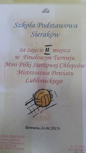 Dnia 24.04.2017 odbył się Finał Powiatowych Zawodów w Mini Piłce Siatkowej chłpców szkół podstawowych w Boronowie. W turnieju startowały następujące drużyny :