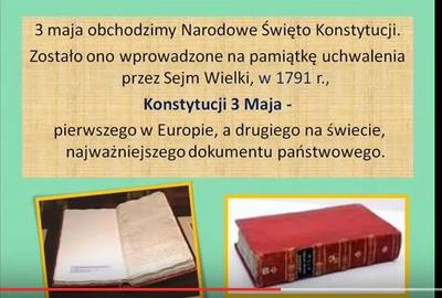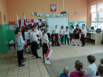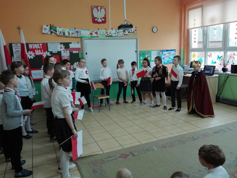 W tym samym dniu w Szkole Podstawowej w Wędzinie uczniowie klas II przygotowali inscenizację słowno-muzyczną dotyczącą Święta Konstytucji 3 Maja. Dzieci zadbały o stosowny ubiór adekwatny do uroczystości, dekoracje i stroje postaci historycznych. Każdy z uczestników posiadał flagę, kotylion lub wstążkę w naszych barwach narodowych. Z inscenizacji uczniowie dowiedzieli się wielu informacji o okolicznościach uchwalenia Konstytucji i osobach z nią związanych.