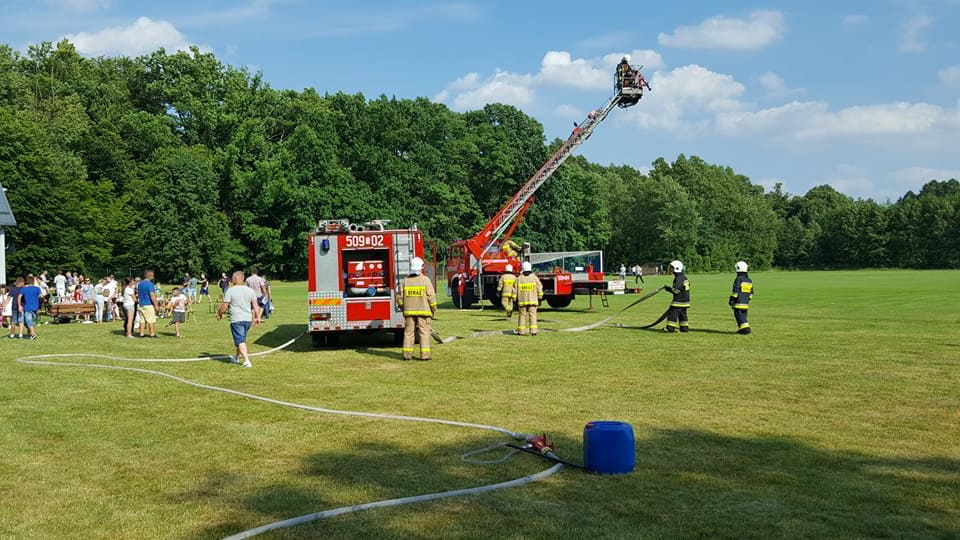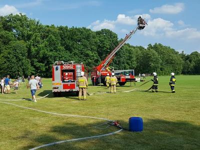 W kolejnym punkcie programu znalazł się pokaz straży pożarnej z OSP Sieraków, podczas której odbyły się dwa pokazy gaśnicze. Nie zabrakło wody i piany, w której uczniowie chętnie się chłodzili. Później zebrani mogli wziąć udział w zorganizowanych dla nich grach, zabawach, malowaniu twarzy.