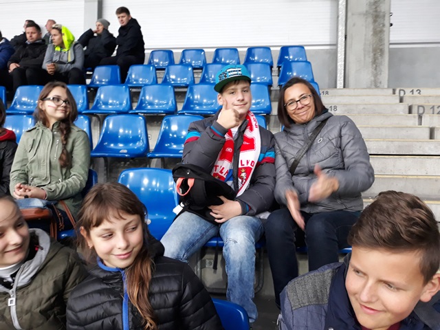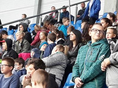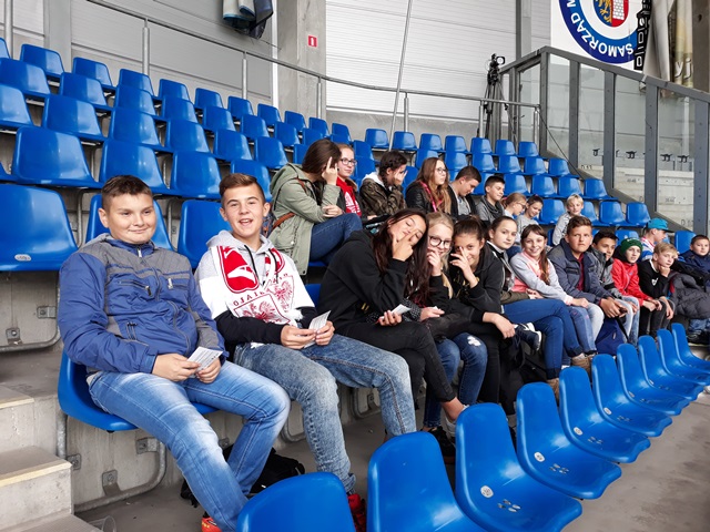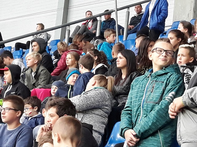 Mecz dostarczył wielu emocji, ale największym przeżyciem było zobaczenie stadionu, który może pomieścić ok .10 tyś. kibiców. Podczas całego meczu był prowadzony bardzo żywiołowy doping, w którym nasi uczniowie dzielnie dopingowali zawodników i świetnie się przy tym bawili. Mecz ten był fajną lekcją piłki nożnej. Uczniowie na żywo mogli zobaczyć piłkarzy, których na co dzień mogą oglądać tylko podczas relacji telewizyjnych. Co niektórym udało się też przybić piątkę z naszymi piłkarzami po strzelonej drugiej bramce.