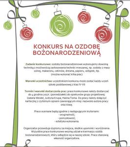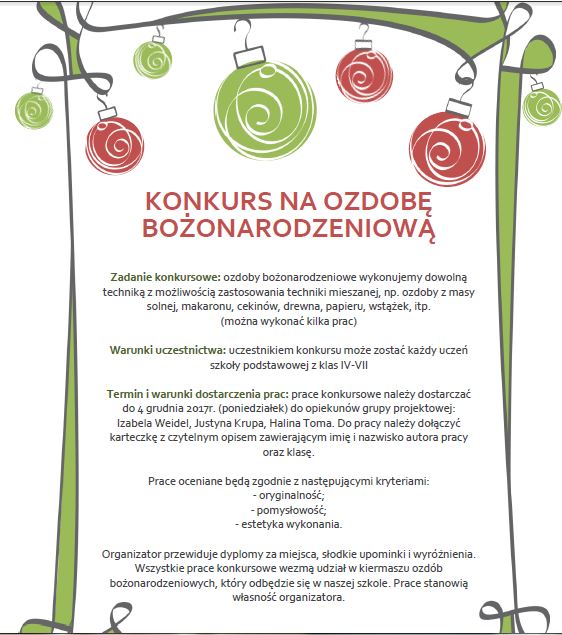 KONKURS NA OZDOBĘ BOŻONARODZENIOWĄ Zdjęcia Załączniki konkurs.pdf [456.48 kB] konkurs1.jpg [67.60 kB] Zobacz również EUROPEJSCY NAUCZYCIELE OCZAROWANI POLSKĄ… SPEKTAKL "MAŁA SYRENKA" ZABAWA ANDRZEJKOWA KONKURS NA OZDOBĘ BOŻONARODZENIOWĄ DZIEŃ OWOCÓW I WARZYW ŚWIĘTO DYNI 28 października 2017 Aktualności Wydrukuj Udostępnij Wyświetlono: 865