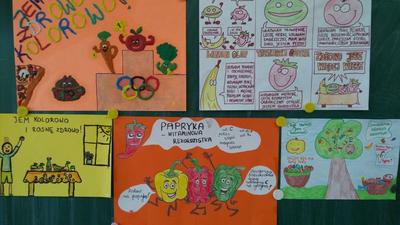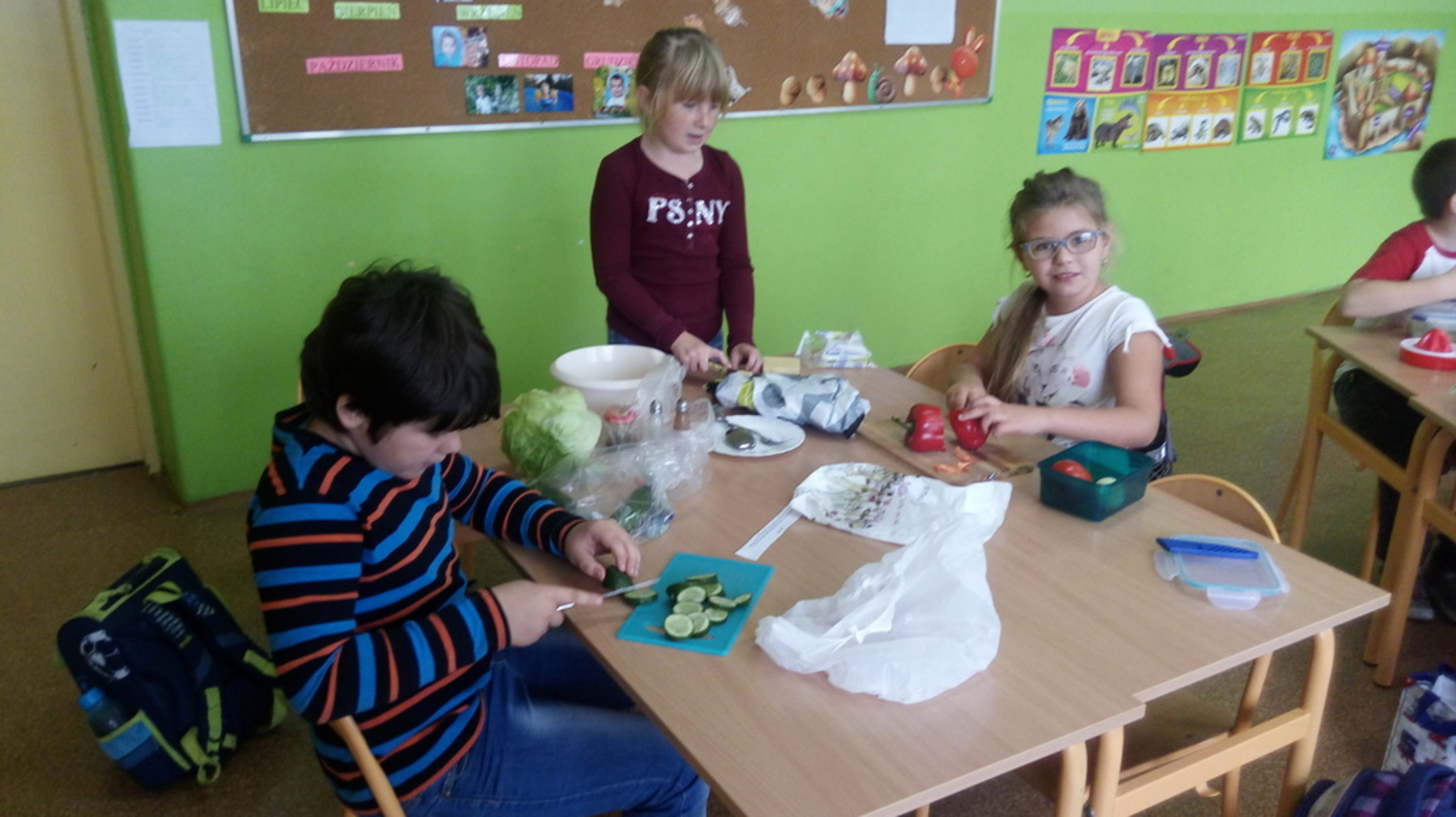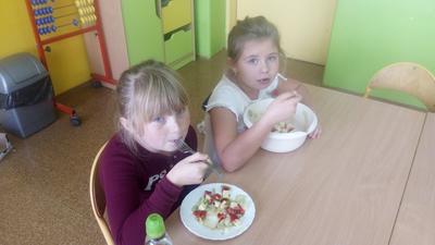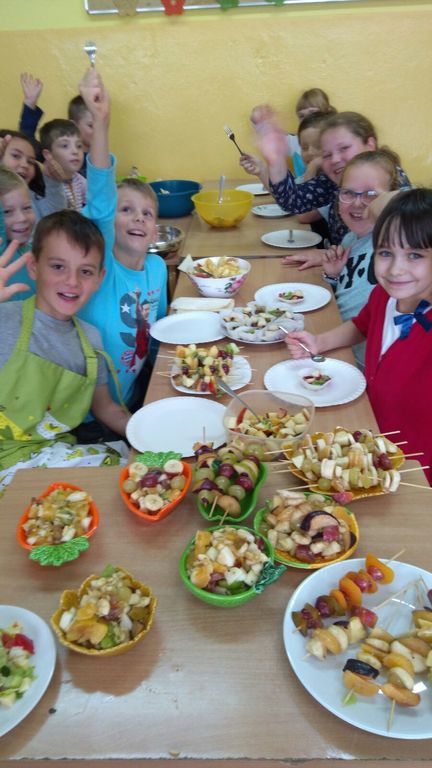 26. 10. 2017 r. w klasach I-III zorganizowano Dzień Owoców i Warzyw. Na początku dzieci przypomniały sobie, dlaczego warto codziennie jeść owoce i warzywa. Każdy miał własny pomysł na przyrządzenie pysznego dania owocowego. Nie mogło również zabraknąć sałatki warzywnej. Wszyscy doskonale się bawili. Dzień Owoców i Warzyw był zrealizowany w ramach Nowego Programu dla szkół, którego celem jest skuteczne promowanie wśród uczniów zdrowej diety bogatej w owoce i warzywa oraz mleko.