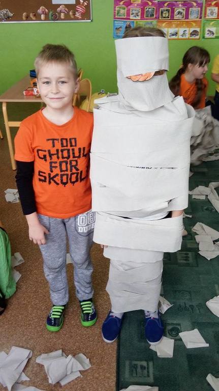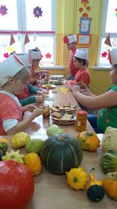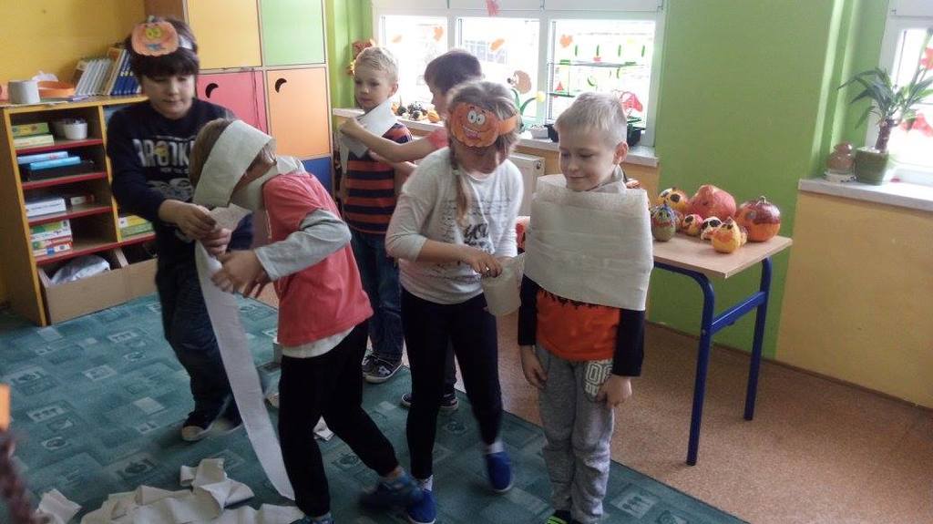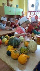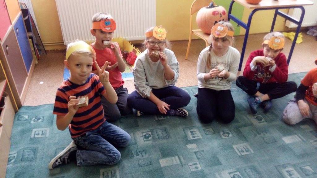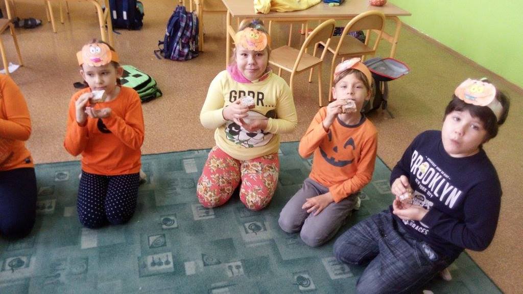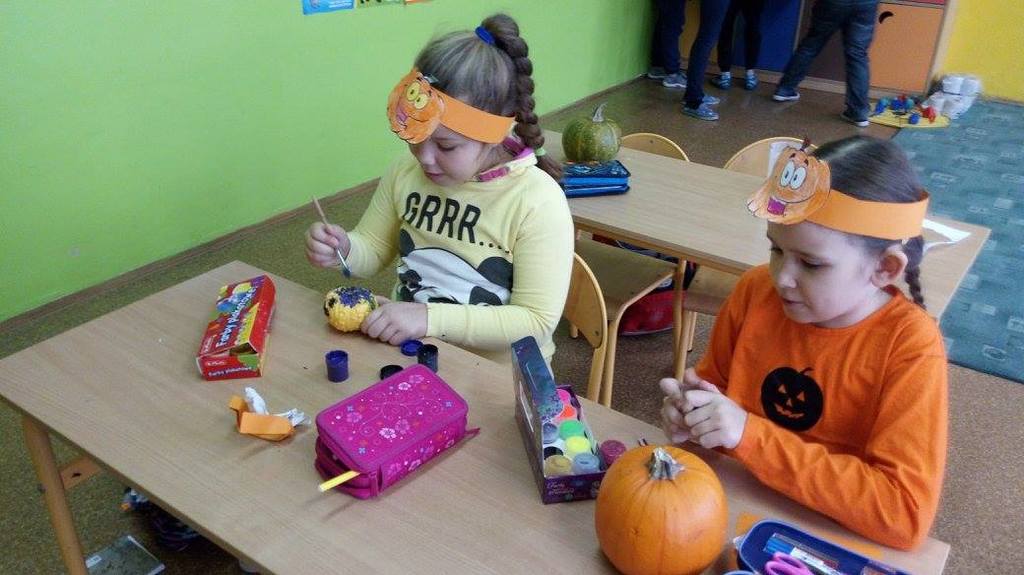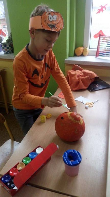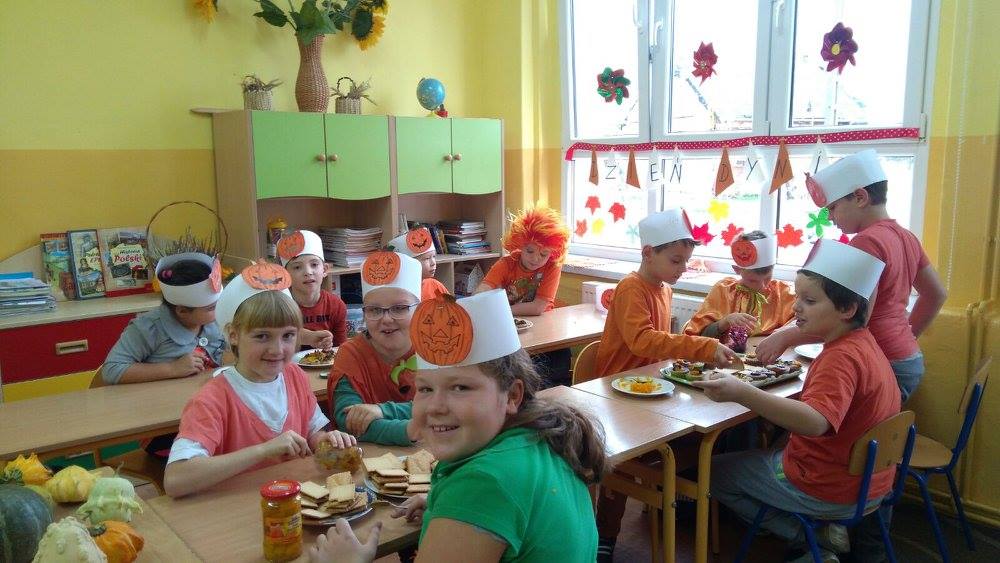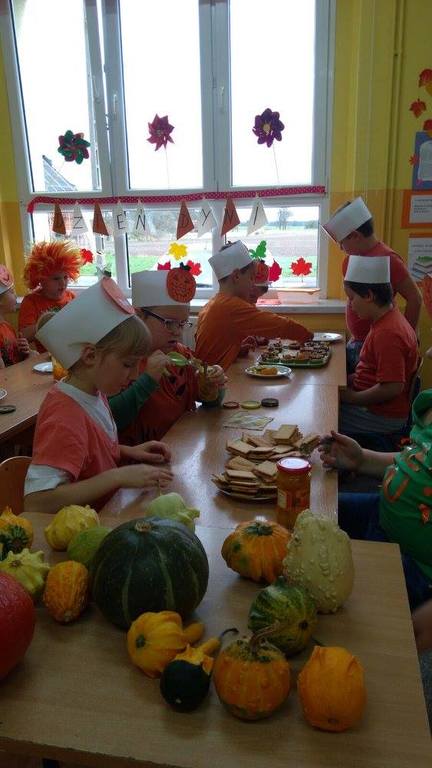 Złota polska jesień dostarcza wielu inspiracji. Dzieci na zajęciach plastycznych wykonują ciekawe prace z kasztanów, żołędzi oraz kolorowych liści. W klasach trzecich niewątpliwą gwiazdą tegorocznej jesieni została DYNIA. O jej walorach zdrowotnych uczniowie dowiedzieli się , podszas obchodów Święta Dyni. Wśród dzieci ubranych na pomarańczowo, można było poczuć się jak w dyniowej krainie. Jak co roku przy współpracy z rodzicami na stołach pojawiły się pyszne potrawy dyniowe. Największą popularnością cieszyło się ciasto i babeczki dyniowe. Dodatkowo dzieci malowały dynie, wykonały ciekawe plakaty oraz uczestniczyły w różnych zabawach ruchowych, w których motywem przewodnim była dynia.