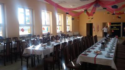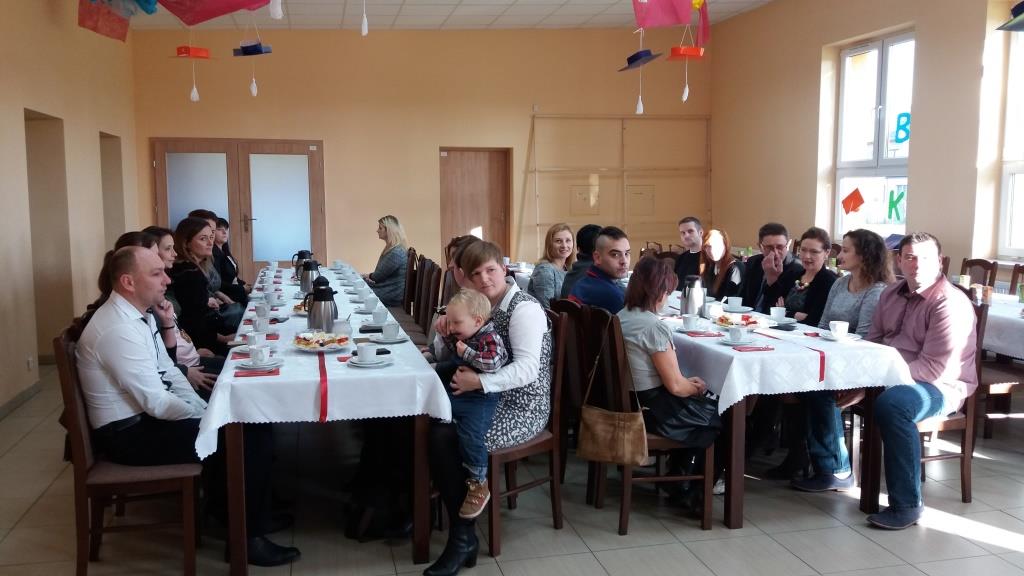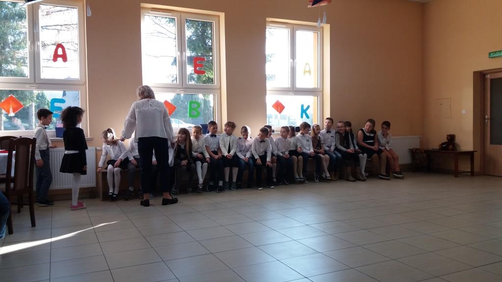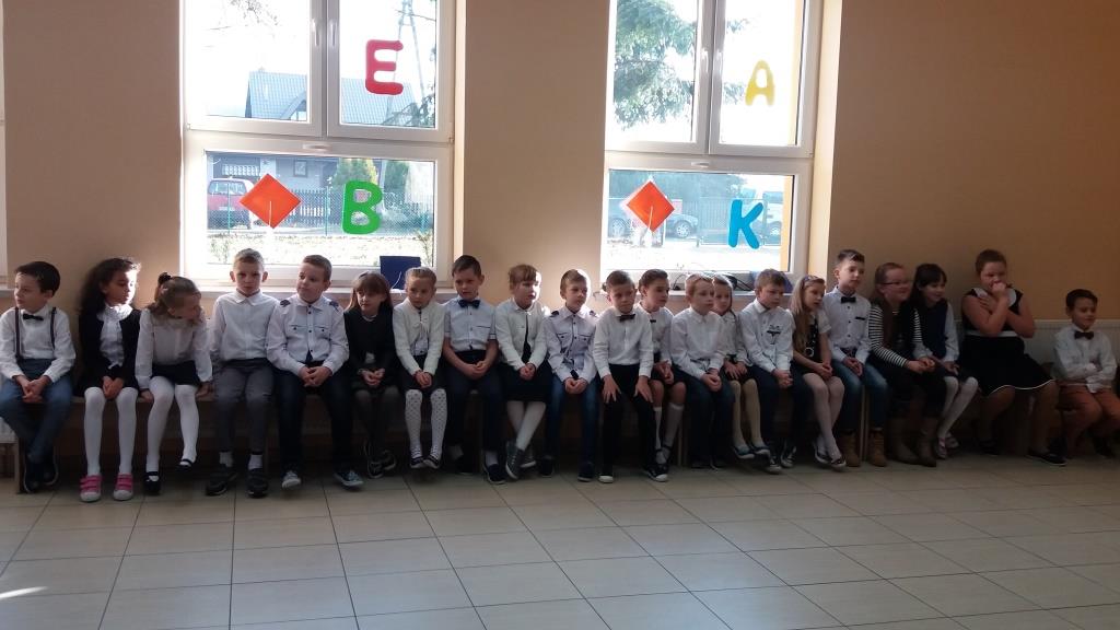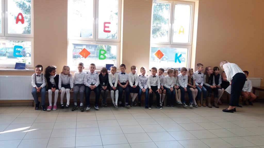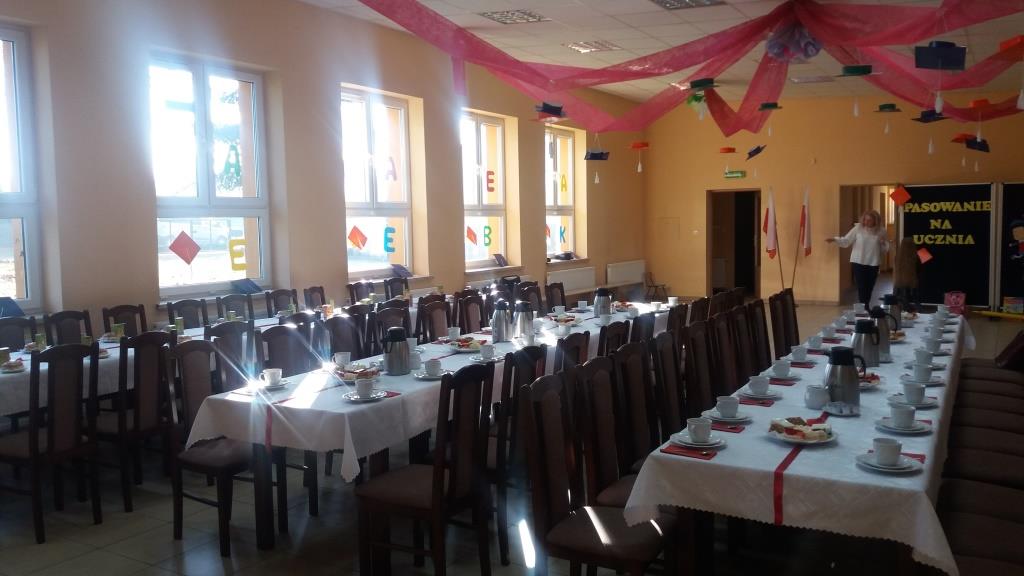 Uroczystość pasowania na ucznia odbyła się w budynku wielofunkcyjnym w Panoszowie, na odświętnie ubranej sali. Było bardzo uroczyście. Rodzice mogą być dumni ze swoich pociech, które nie tylko przepieknie spiewały i recytowały wiersze, ale i zatańczyły poloneza.