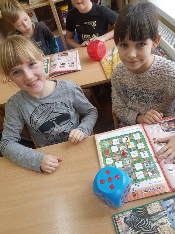 W bieżącym roku szkolnym klasy 1, 3a oraz 3b biorą udział w międzyklasowym projekcie z języka angielskiego pod nazwą Let's Play English. Celem projektu jest rozwijanie wśród uczniów zainteresowań językiem angielskim oraz podniesienie świadomości o konieczności uczenia się języka angielskiego. Działania projektowe wplatane są w zajęcia, czyniąc je bardziej atrakcyjnymi i owocnymi, co przekłada się na bardzo dobry zasób słownictwa naszych uczniów i osłuchanie z językiem, pozwalające na jego lepsze zrozumienie. To wszystko dzięki licznym rekwizytom(packi, mózg, magiczny worek oraz wiele, wiele innych) i wykorzystaniu nowoczesnych technologii w uczeniu, a także zastosowaniu popularnych i efektywnych metod i technik: TPR (metoda reagowania całym ciałem - wiedza przyswajana przez osłuchanie się i ruch, gdzie najlepiej sprawdzają się piosenki), metoda komunikacyjna, techniki teatralne oraz gry i zabawy językowe( np. Dobble, Dixit, Uno, Who Am I), których duża różnorodność pozwala rozwijać wszystkie obszary językowe. Baw się językiem angielskim, a nawet nie poczujesz, że się go uczysz!