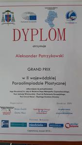 Wielkim sukcesem ucznia klasy VIIA Aleksandra Patrzykowskiego było zdobycie nagrody specjalnej Grand Prix w konkursie plastycznym. Praca Aleksandra wykonana różnorodną techniką przedstawiała fragment terenu naszej najbliższej okolicy, z precyzyjnie wykonanymi figurkami postaci, pojazdów, budynków, elementów przyrody wkomponowanych w ciekawe krajobrazy i połączonych drogami. Zwycięzcy i rodzicom serdecznie gratulujemy oraz składamy podziękowania za trud włożony w przygotowanie pracy!