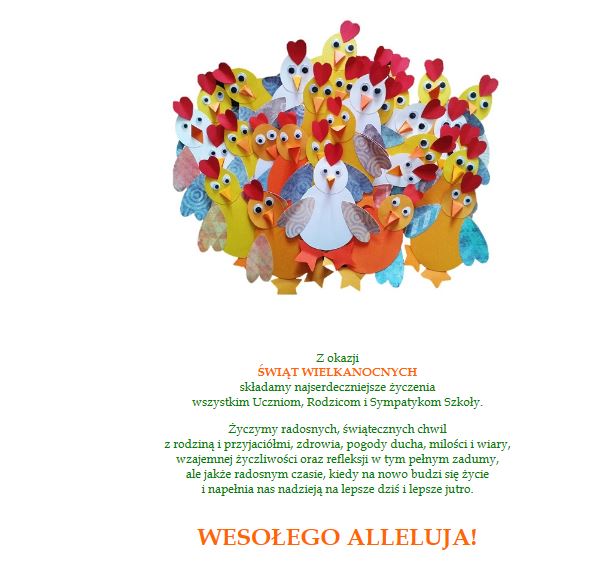 ŻYCZENIA WIELKANOCNE Z okazji ŚWIĄT WIELKANOCNYCH składamy najserdeczniejsze życzenia wszystkim Uczniom, Rodzicom i Sympatykom Szkoły. Zdjęcia Zobacz również Gminny Turniej Wiedzy Pożarniczej Gminny Konkurs Pięknego Czytania Opowiadań w... "MOJA NIEZWYKŁA ZIMOWA OPOWIEŚĆ" ŻYCZENIA WIELKANOCNE Konkurs "Odzyskanie przez Polskę niepodległości... XV GMINNE PREZENTACJE PROFILAKTYCZNE 29 marca 2018 Aktualności Wydrukuj Udostępnij Wyświetlono: 616