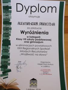 kategoria III - klasy VII oraz gimnazjum: Aleksandra Parkitna.