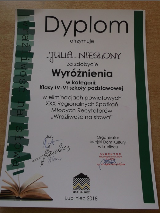 W tym roku nasze uczennice Amelia Chmiel, Julia Niesłony oraz Aleksandra Parkitna zdobyły wyróżnienie.