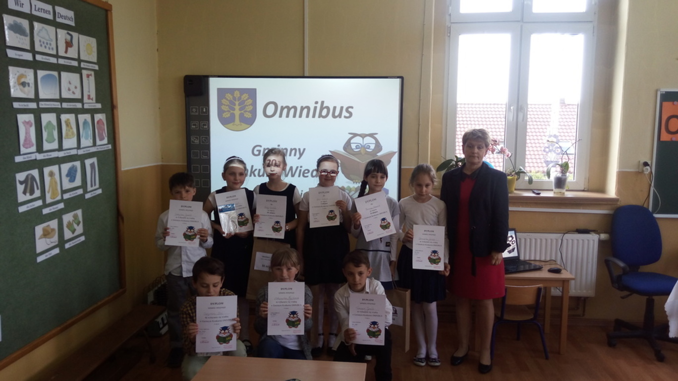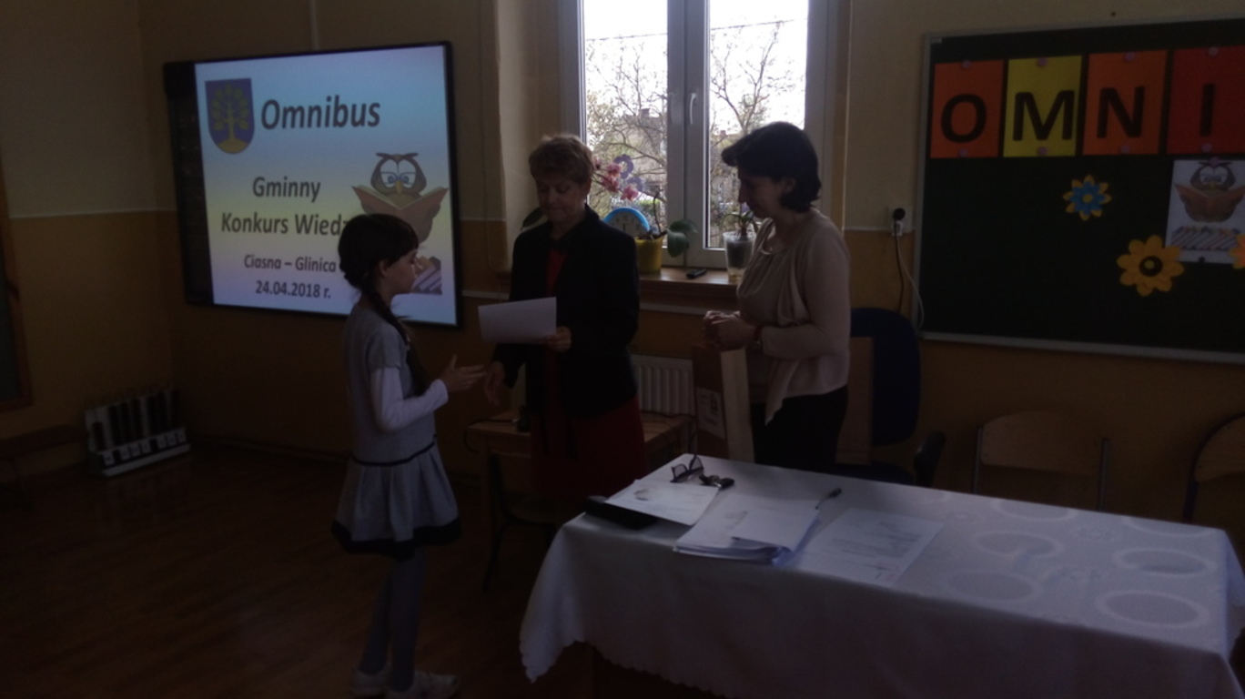 24 kwietnia 2018 roku w Szkole Podstawowej w Glinicy odbył się II Gminny Konkurs Wiedzy "Omnibus". Celem konkursu było propagowanie wśród uczniów zasad zdrowej rywalizacji, nawyku systematycznego uczenia się, motywowanie uczniów do wszechstronnego rozwoju i pełnego wykorzystania własnych talentów, zainteresowań, zdolności i możliwości intelektualnych z różnych dziedzin wiedzy. Naszą szkołę reprezentowali : Roksana Francik, Aleksandra Majchrzak oraz Szymon Fal. Z ogromną radością możemy poinformować, że wśród laureatów konkursu znalazła się Roksana Francik z klasy 3 a, która zajęła II miejsce.