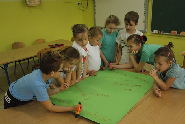 Wychowawczyni klasy II Danuta Pietrasz prowadziła trzeci, ostatni w tym roku szkolnym , wiosenny etap projektu edukacji prozdrowotnej dla zerówek i klas I-III szkół podstawowych „Zdrowo jem, więcej wiem”. Podczas wiosennej edycji klasa II między innymi uczestniczyła w tematycznych lekcjach: „Uczymy się dobrych zwyczajów żywieniowych” i „Zdrowo sprawni”. Celem tych zajęć byłokształtowanie prawidłowych postaw, prawidłowe wykonywanie ćwiczeń, poznanie zdrowej piramidy żywieniowej, poznanie zdrowych produktów, dzięki którym będziemy sprawni fizycznie oraz kształtowanie umiejętności współpracy w grupie, dyscypliny i zachowania zasady fair play, motywowanie dzieci do wdrażania prawidłowych zwyczajów żywieniowych, uczenie odpowiedzialności za wybory produktów do spożycia, wyjaśnienie dlaczego nie powinno się jadać niektórych produktów oraz uświadomienie dzieciom roli aktywności fizycznej.