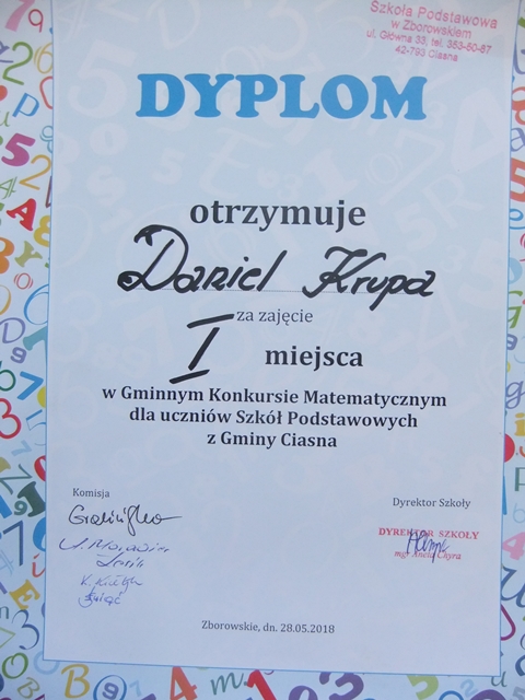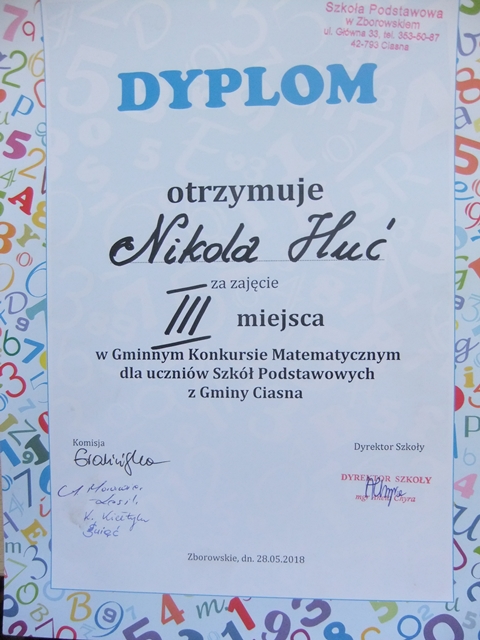 W dniu 28 maja 2018 r. w szkole w Zborowskiem spotkali się najlepsi matematycy ze szkół podstawowych Gminy Ciasna, aby wziąć udział w Gminnym Konkursie Matematycznym. Naszą szkołę reprezentowali