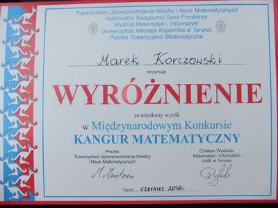 Marek Korczowski z klasy VII otrzymał wyróżnienie