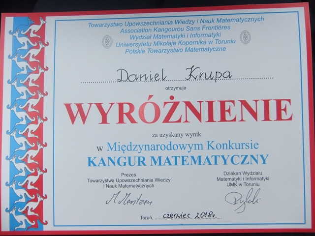 Także uczniowie z naszej, sierakowskiej szkoły zgłosili się do tegoż konkursu, chęcią zmierzenia się z królową wszystkich nauk osiągając świetne, bardzo wysokie wyniki!!! Z ogromną dumą i radością możemy poinformować, iż uzyskaliśmy 2 wyróżnienia