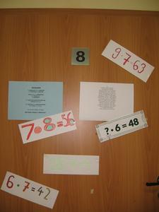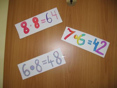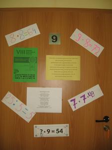 Trwające od kilku dni przygotowania do VIII Światowego Dnia Tabliczki Mnożenia zmieniły wystrój naszej szkoły. Uczniowie w tym czasie przygotowywali plakaty, rekwizyty, ozdabiali szkołę dekoracjami. Aktywnie przypominali sobie tabliczkę mnożenia. O zbliżającym się Święcie przypominał plakat., a na drzwiach od sal lekcyjnych przykłady z tabliczką mnożenia.