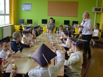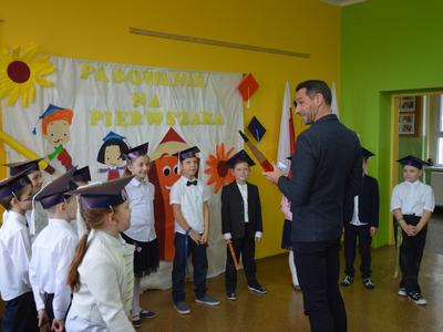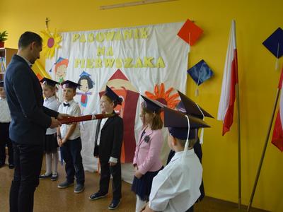 Z okazji tej uroczystości pan dyrektor wręczył uczniom dyplomy i legitymację szkolną a rodzice i koledzy z klasy drugiej podarowali symboliczne ołówki i słodką niespodziankę.