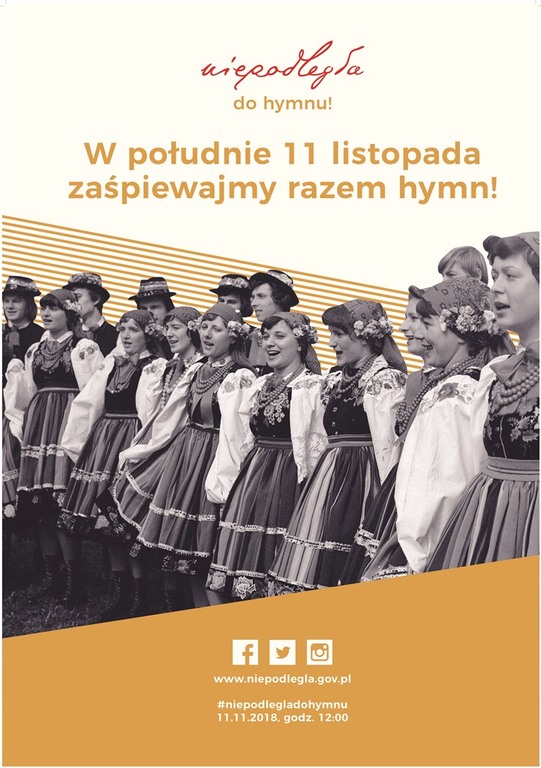 11 listopada 2018 roku w całej Polsce i w wielu miejscach na świecie w samo południe będziemy śpiewać hymn państwowy. Dołącz do nas! Pokażmy, że w stulecie odzyskania niepodległości jesteśmy jedną, biało-czerwoną rodziną. Zademonstrujmy to w najbliższy sercom Polaków sposób – śpiewając wspólnie hymn.