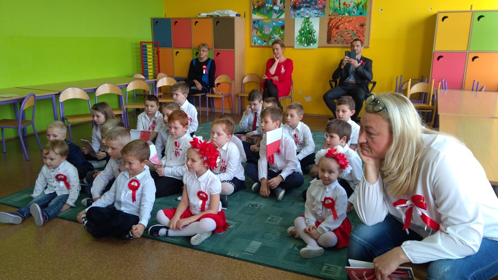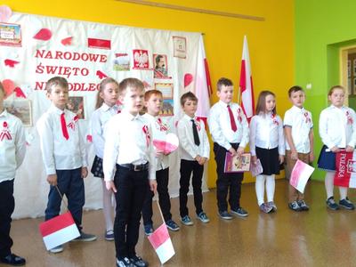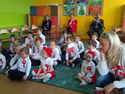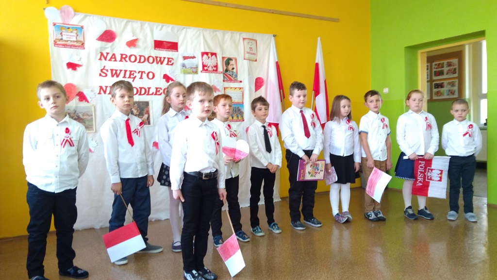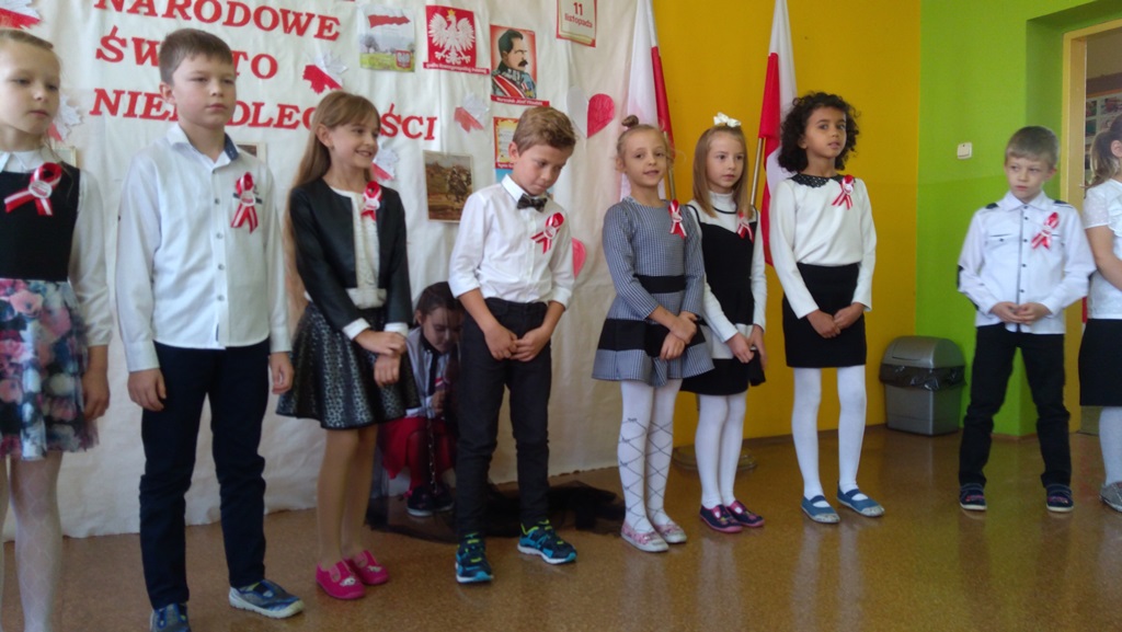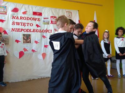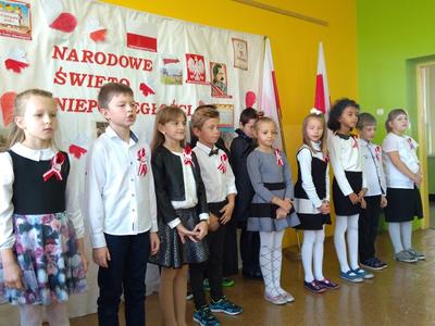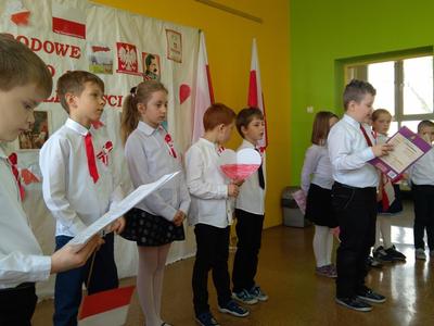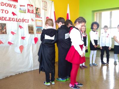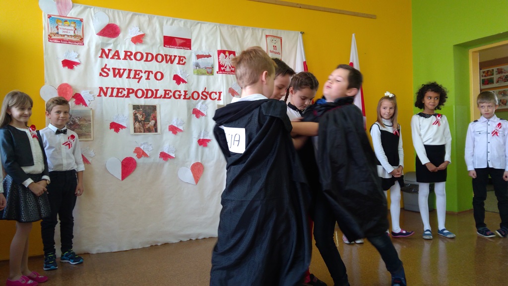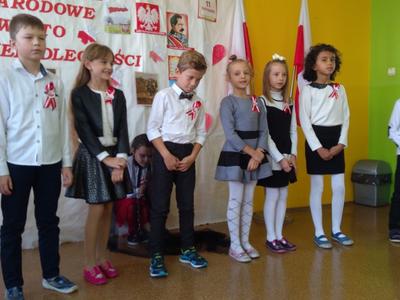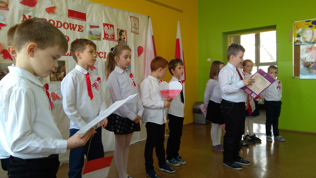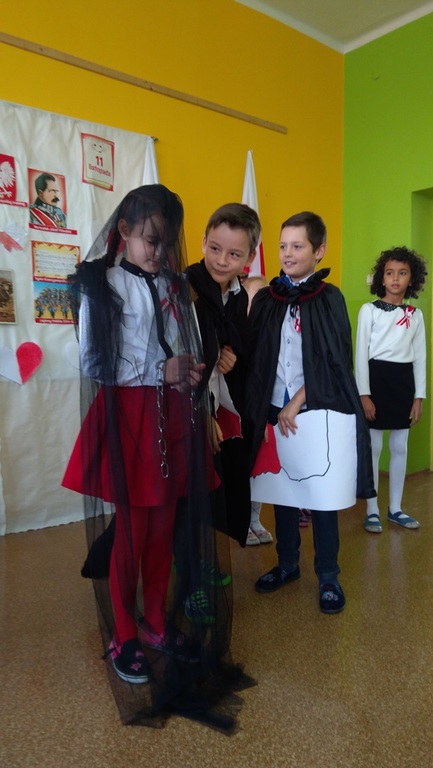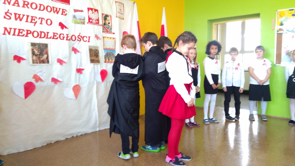 Uczniowie klasy pierwszej, drugiej oraz dzieci z przedszkola przybliżyły historię naszego kraju - czasów, gdy Polska straciła niepodległość na 123 lata. Apel był przedstawiony w bardzo ciekawej formie - uczniowie recytowali wiersze oraz śpiewali pieśni żołnierskie.