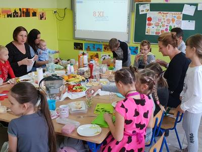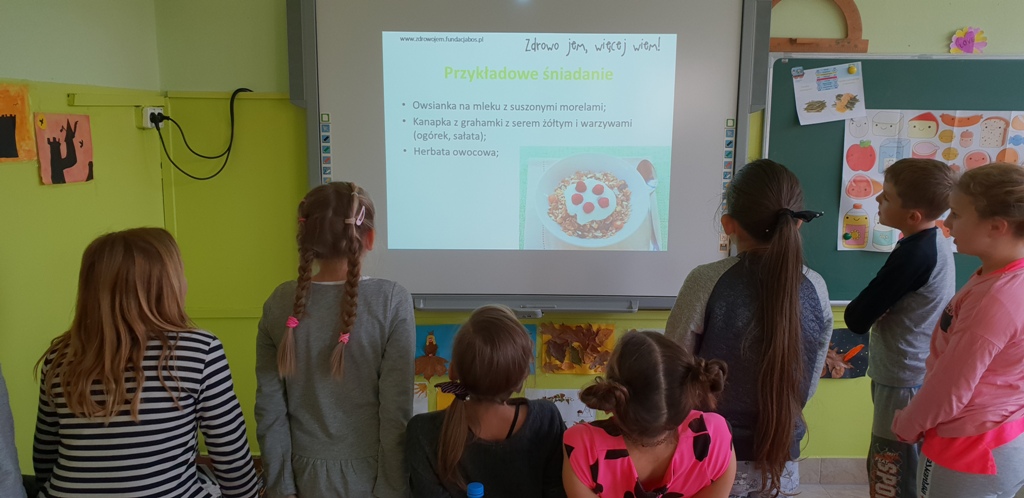 Na zajęciach dzieci poznały 12 zasad zdrowego żywienia opracowanych przez Instytut Matki i Dziecka. Zdobytą wiedzę uczniowie mogli wcielić w życie 8 listopada, w Dniu Zdrowego Śniadania, podczas organizowanego z rodzicami i wychowawcą wspólnego śniadania.