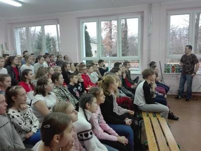 21 listopada uczniowie klas VI-VIII wzięli udział w warsztatach z zakresu profilaktyki uzależnień. Spotkanie poprowadził pan Andrzej Morajda - trener kompetencji medycznych i profilaktycznych. Celem warsztatów było poszerzenie wiadomości uczniów o alkoholu i jego działaniu na organizm ludzki. Z uwagi na fakt, iż pan Andrzej jest również czynnym ratownikiem medycznym uczniowie mieli okazję przypomnieć sobie zasady udzielania pierwszej pomocy oraz poznać praktycznie zastosowanie defibrylatora.