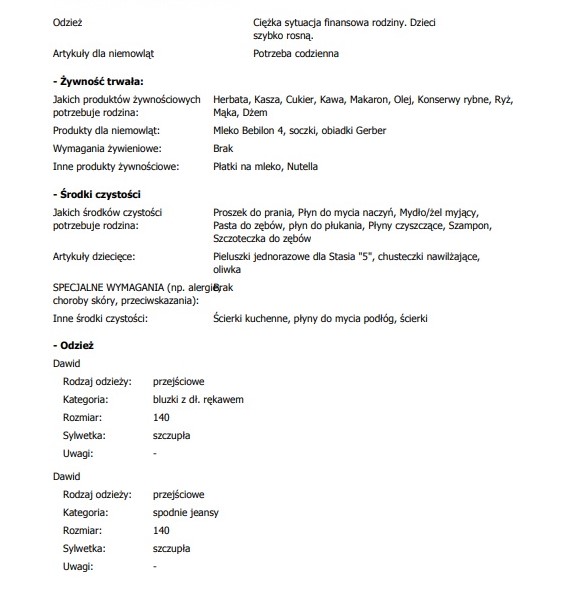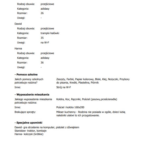 Na poniższych zdjęciach znajduje się historia rodziny i lista rzeczy, które można Im podarować.