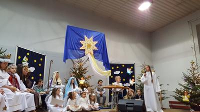 Dla kogo dziś niebo się otwiera? Dla kogo przychodzi Syn Boży na ziemię? Uczniowie wykazali się świetną grą aktorską i we wspaniałej scenerii próbowali przybliżyć nam odpowiedzi na te pytania. Występ uzupełniały magiczne i uroczyste kolędy, pastorałki i piosenki świąteczne, a także gra na instrumentach w wykonaniu naszych uczniów. Na koniec absolwenci naszej szkoły zaprosili wszystkich przybyłych gości do wspólnego kolędowania.