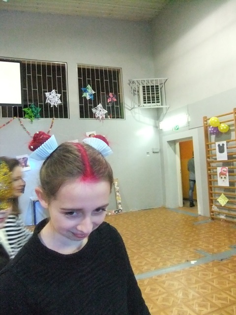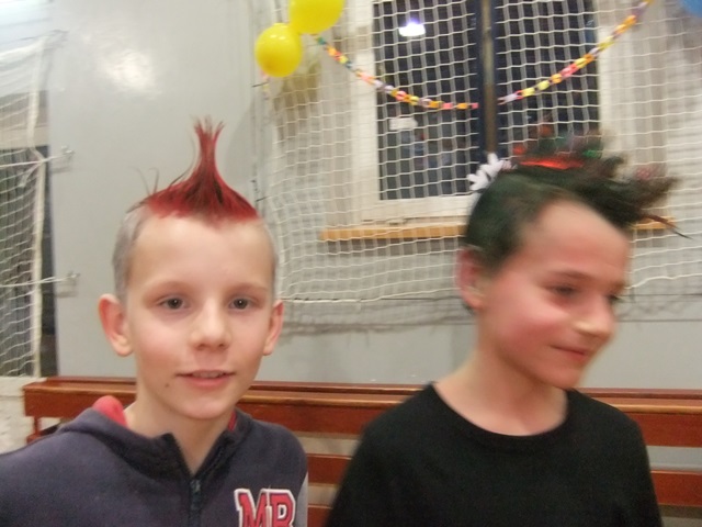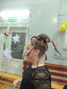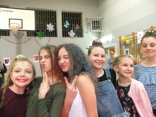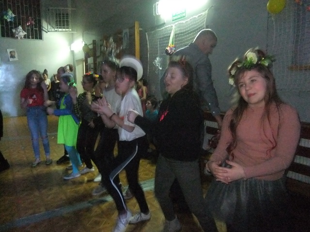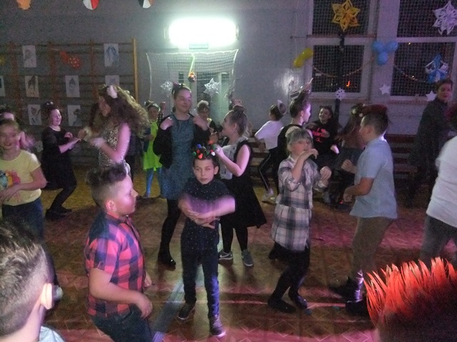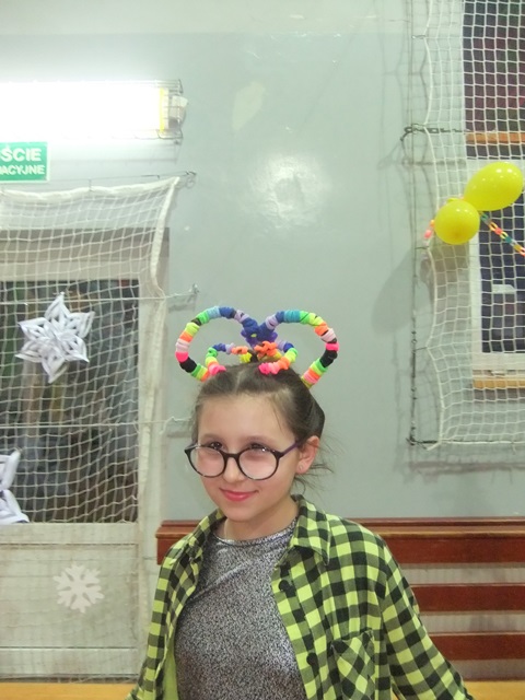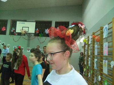 W środę, 6 lutego, na naszych uczniów czekała pięknie ustrojona sala gimnastyczna. W pierwszej części udział wzięli uczniowie klas IV – V a w drugiej klasy VI – VIII. O odpowiedni klimat i dobrą zabawę dbał Pan Marcin grający najpopularniejsze hity. Nie mogło zabraknąć wspólnego tańca makareny, kaczuszek, belgijki czy długiego pociągu. Dodatkową atrakcją były konkursy i zabawy, przygotowane przez Panią Anitę prowadzącą bal, które dostarczyły mnóstwo radości. Uczniowie nie zawiedli w swej pomysłowości na wykonanie szalonych fryzur. Jury miało trudny wybór, gdyż było wiele ciekawych fryzur. Wyłoniono 5 najciekawszych fryzur z grupy młodszej i starszej.