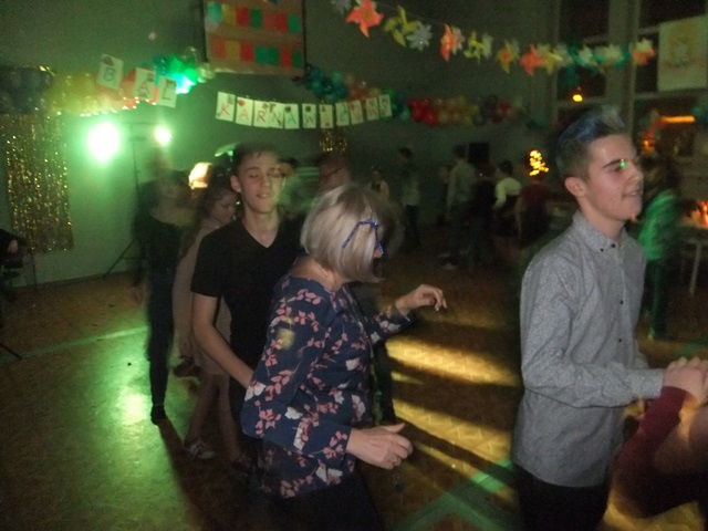 Wspaniała muzyka sprawiła, że bawili się zarówno uczniowie, jak i nauczyciele. Zabawę uprzyjemnił poczęstunek w formie pizzy. Kolejny bal karnawałowy już za rok!