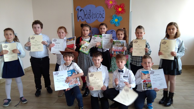 26 marca 2019r. odbył się w Ciasnej Gminny Konkurs Recytatorski dla uczniów klas młodszych, wśród recytatorów wystąpili: