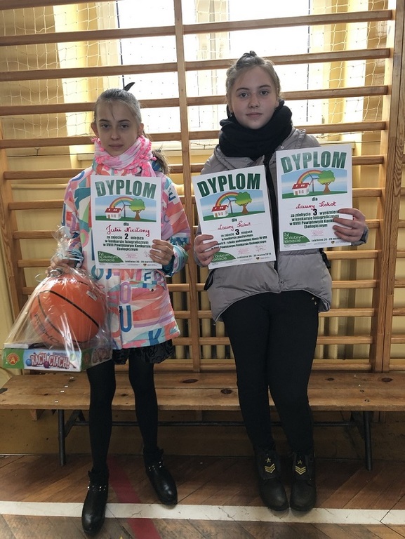 W czwartek, 28 marca, w Specjalnym Ośrodku Szkolno-Wychowawczym im. Konrada Mańki w Lublińcu odbyła się gala wręczenia nagród z okazji XVIII edycji Powiatowego Konkursu Ekologicznego pod tegorocznym hasłem: "Żyj w dobrym klimacie". Ta doroczna impreza przyciąga nie tylko miłośników dobrego klimatu, lecz także wszystkich lubujących się w fotografii, recyklingu i pokazach mody. Organizatorzy zadbali o atrakcje dla przybyłych gości, prezentując doskonałe przygotowanie podopiecznych w przedstawieniach i utworach muzycznych. Nasze uczennice: Laura Kokot z klasy 5a oraz Julia Niesłony z klasy 6 wzięły udział w konkursie fotograficznym i plastycznym uzyskując fantastyczne wyniki. W konkursie plastycznym Laura zajęła 3 miejsce, a jej pracę doceniono spośród kilkudziesięciu nadesłanych z całego powiatu. W konkursie fotograficznym Julia wraz ze swym bardzo orygnialnym zdjęciem zajęła 2 miejsce, natomiast trzecie wyróżnienie otrzymała Laura.