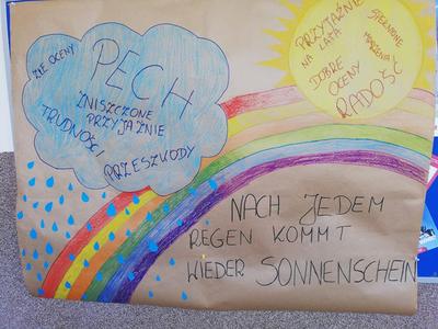 W tym roku były to przysłowia po polsku, po niemiecku i angielsku. Zadania były niełatwe. Uczniowie musieli przetłumaczyć z pomocą nauczycieli i słowników przysłowia oraz przygotować plakat wylosowanego przysłowia. Jak sie okazało nie były to łatwe zadania, bo największą trudność uczniom sprawiła nieznajomość.... polskich przysłów. Jadnak wspólnymi siłami wszystkie klasy rozwiązały te zadnie. Najlepszy plakat ilustrujący przysłowie przygotowała klasa siódma.