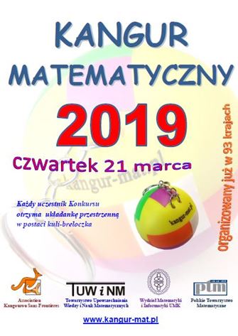 21 marca 2019 roku uczniowie z całej Polski mogli sprawdzić swoje umiejętności matematyczne w kolejnej edycji Międzynarodowego Konkursu Matematycznego "Kangur". Konkurs wywodzi się z Australii, gdzie został zainaugurowany w latach osiemdziesiątych przez światowej sławy popularyzatora matematyki Petera O'Hallorana.