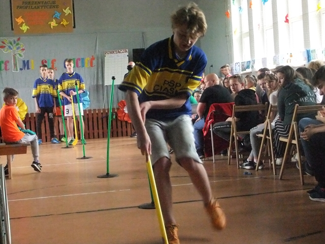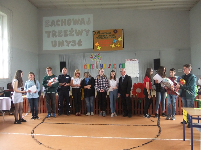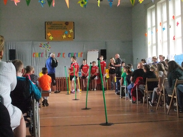 W dalszej części imprezy uczniowie prezentowali swoje umiejętności artystyczne, sportowe oraz wiedzę profilaktyczną. Poszczególne konkurencje oceniało jury, w skład którego weszli: Przewodniczący Rady Gminy Ciasna Henryk Pluta, pracownik socjalny Gminnego Ośrodka Pomocy Społecznej w Ciasnej Aldona Sławińska, przedstawiciel SANEPID- u w Lublińcu Joanna Grajcar oraz st.asp. Dawid Wocław z Komendy Powiatowej Policji w Lublińcu. Drużyny reprezentujący poszczególne szkoły prezentowali utwory wokalne o szeroko pojętej tematyce profilaktycznej, rozwiązywali krzyżówkę profilaktyczną, układali puzzle z hasłem, pisali bardzo kreatywne utwory na temat zdrowia, sukcesu oraz sposobów na nudę, odpowiadali na pytania ekspertów. Wiele emocji uczestnikom dostarczyły konkurencje sportowe. Uczniowie zebrani w hali wysłuchali prelekcji dotyczącej bezpieczeństwa w ruchu drogowym przygotowanej przez funkcjonariuszy policji oraz zapoznali się z wynikami badań przeprowadzonych przez uczennice szkoły w Sierakowie dotyczących szkodliwości picia coca-coli.
