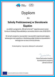 W II semestrze nasza szkoła brała udział w programie „Klimat to temat” realizowanym przez Centrum Edukacji Obywatelskiej. Miał on na celu przybliżenie uczniom zagadnień związanych ze zmianami klimatycznymi na świecie i w naszym najbliższym otoczeniu oraz pokazanie możliwości osobistego wpływu na ich ograniczenie.