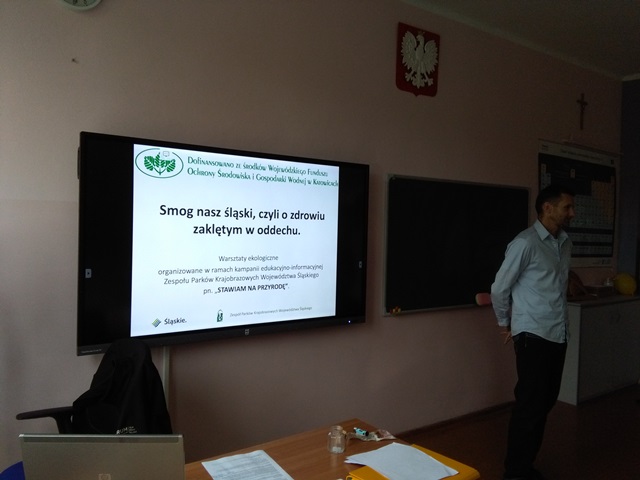5 listopada w naszej szkole odbyły się warsztaty ekologiczne pod nazwą "Smog nasz śląski, czyli o zdrowiu zaklętym w oddechu". Przedstawiciel Parku Krajobrazowego - Lasy nad Górną Liswartą z siedzibą w Kalinie przybliżył uczestnikom warsztatów treści związane z przyczyną powstawania smogu oraz skutki jego oddziaływania na nasze zdrowie. Wykład prowadzony był w oparciu o prezentację multimedialną oraz proste doświadczenia, ktore lepiej pomogły zrozumieć temat. Wspólnie próbowaliśmy znaleźć rozwiązanie w jaki sposób można ograniczyć ilość emitowanych do atmosfery zanieczyszczeń.