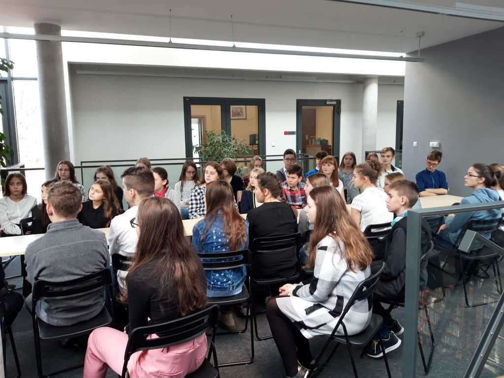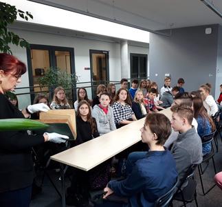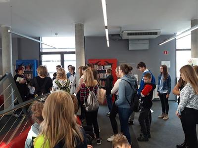 22 listopada klasy VII i VIII wyjechały na edukacyjną wycieczkę do Opola. Pierwszym punktem była wizyta w bibliotece. Miejska Bibloteka Publiczna w Opolu to nie tylko przestrzeń służąca wypożyczaniu książek – to miejsce spotkań, rozmów o literaturze i sztuce oraz edukacji. W zbiorach, oprócz tradycyjnych woluminów, znajdują się audiobooki, czasopisma, płyty CD z muzyką, płyty DVD z filmami, serialami, bajkami czy spektaklami teatralnymi, komiksy, filmy na Blu-ray i gry planszowe. Istnieje możliwość wypożyczania czytników e-booków. Biblioteka oferuje system elektronicznej rezerwacji książek poprzez katalog on-line, automatyczny system zwrotów (wrzutnia) i wypożyczeń (self-check). W bibliotece zwiedziliśmy także wystawę Oli Nepsuj jednej z najzdolniejszych polskich ilustratorek i graficzek.
