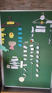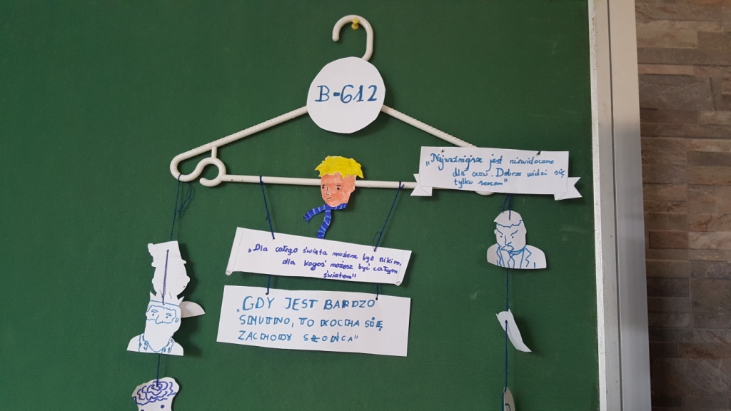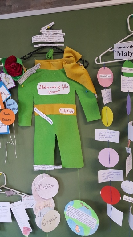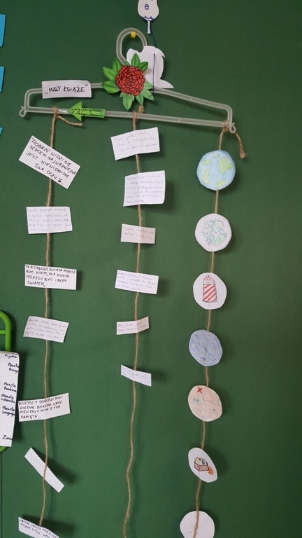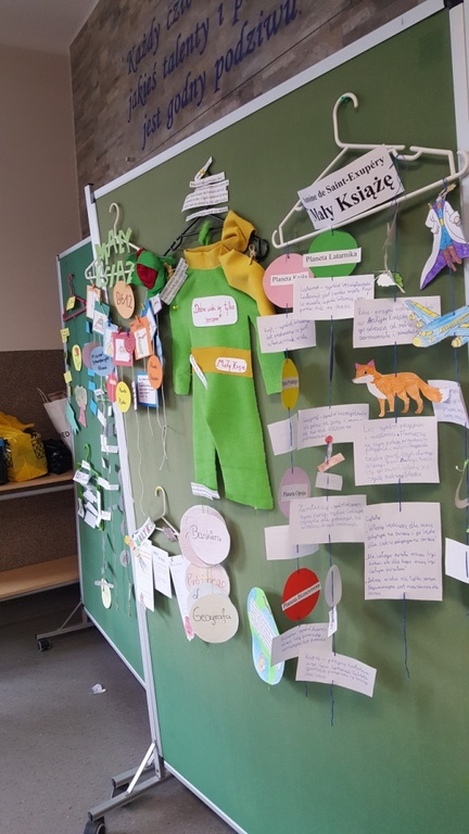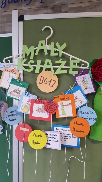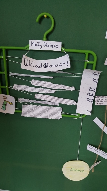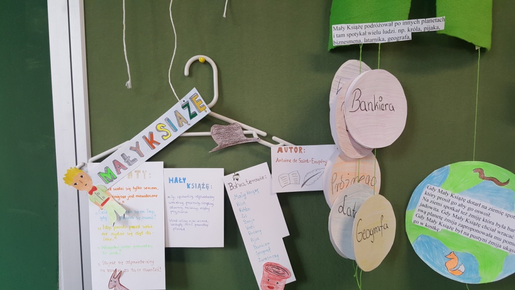 Czy każda książka musi stać na półce? Uczniowie klasy siódmej spróbowali swoich sił w tworzeniu lektury na wieszaku. Utrwalali w ten sposób swoją wiedzę na temat lektury „Mały Książę”. Wszystkie grupy były fantastycznie zaangażowane na lekcji, każdy pracował i chętnie wykorzystywał swoje kreatywne pomysły. A teraz możemy się pochwalić niesamowitymi efektami! Mamy nadzieję, że dzięki takiej metodzie pracy, lektury na dłużej zostaną w pamięci czytelników.