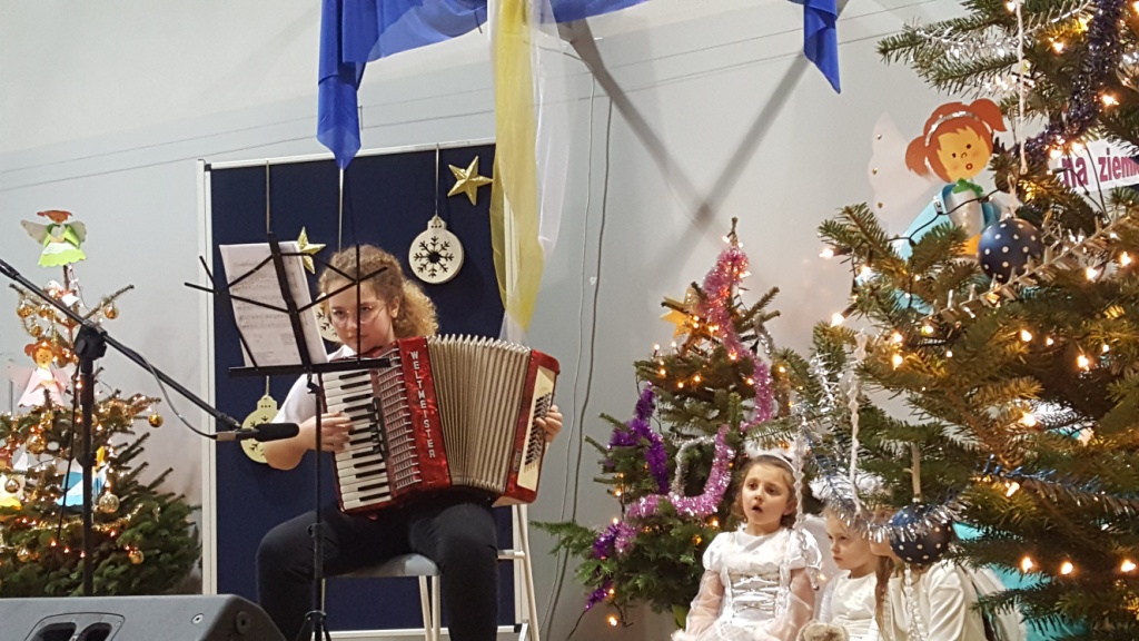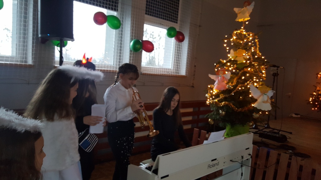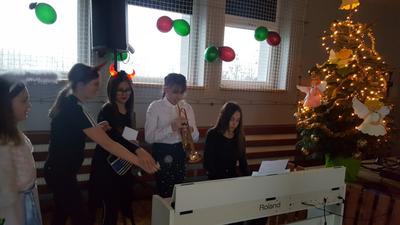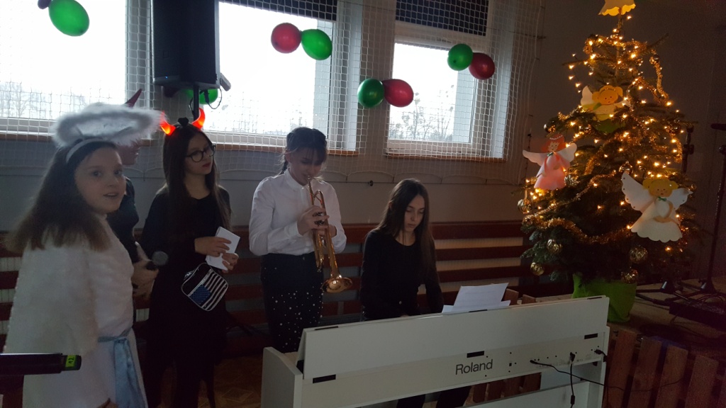 Po występach młodych aktorów zaprosiliśmy wszystkich na wspólne kolędowanie. Uczniowie chętnie zaśpiewali znane kolędy, piosenki świąteczne, a także zagrali ich melodie na różnych instrumentach.