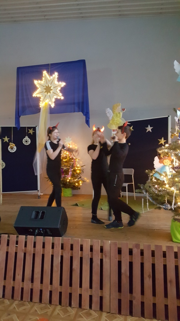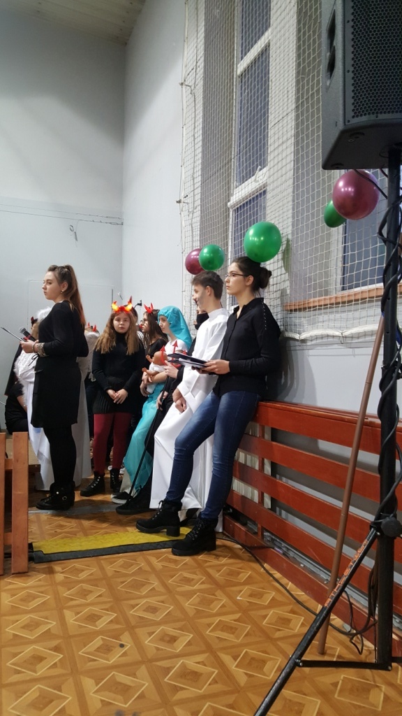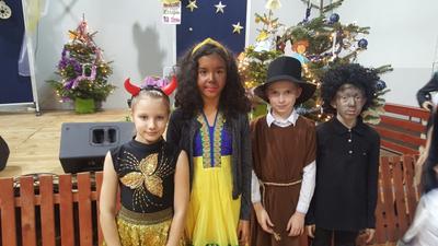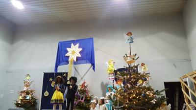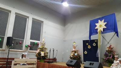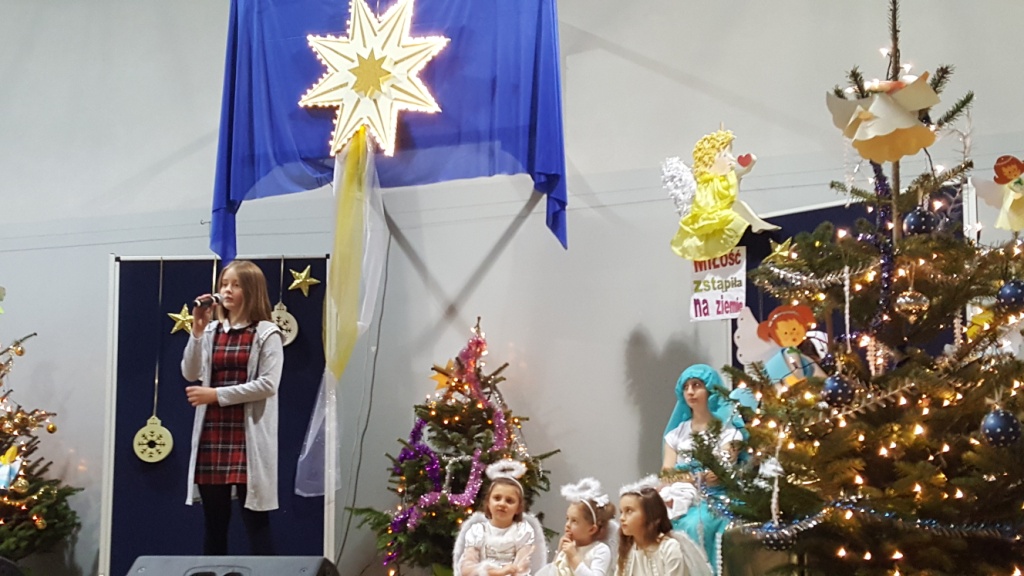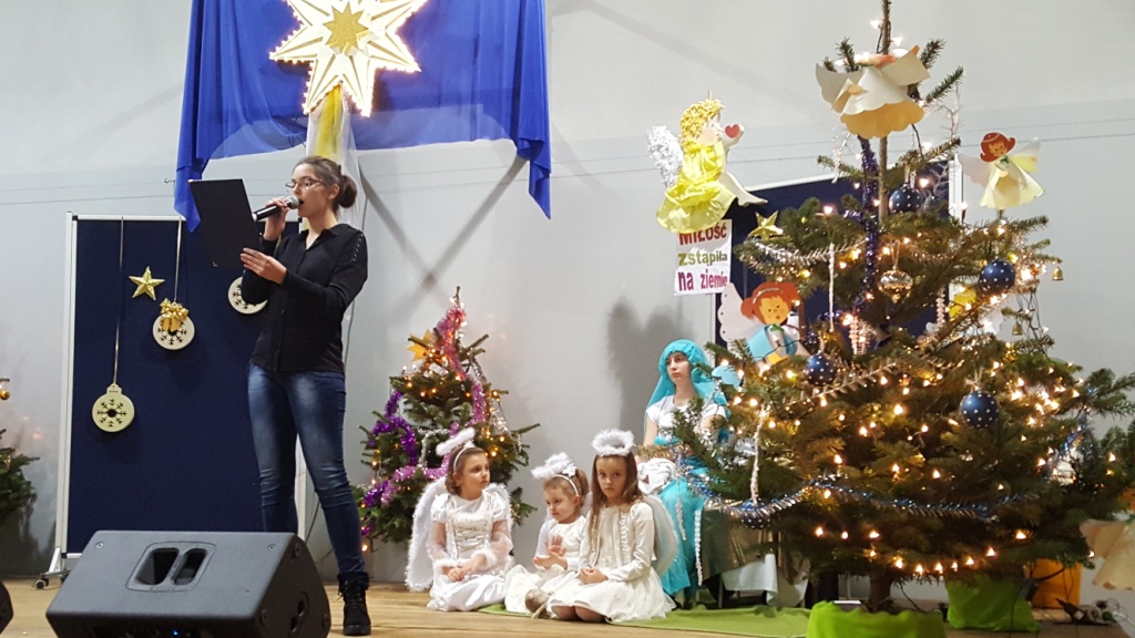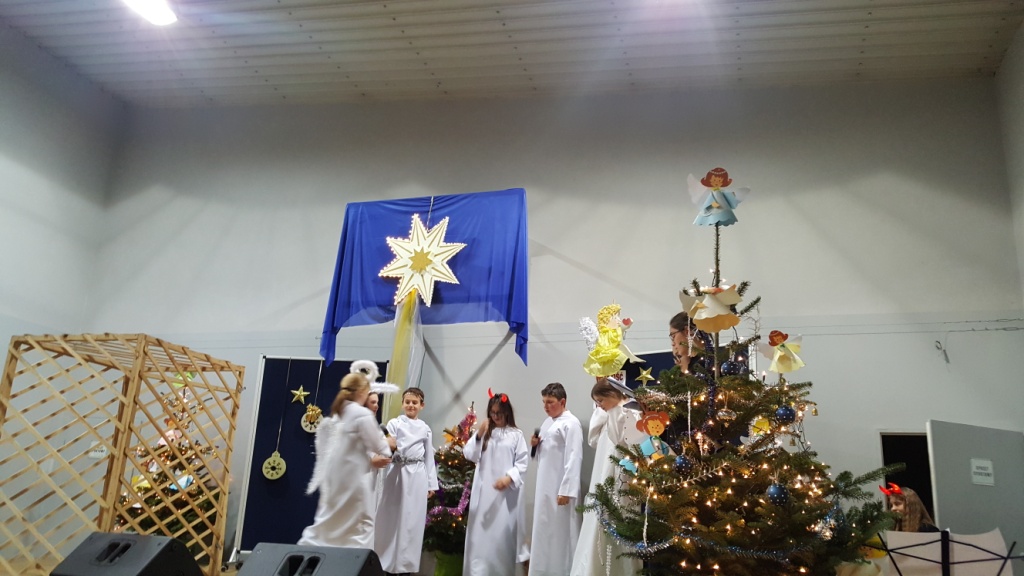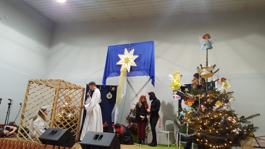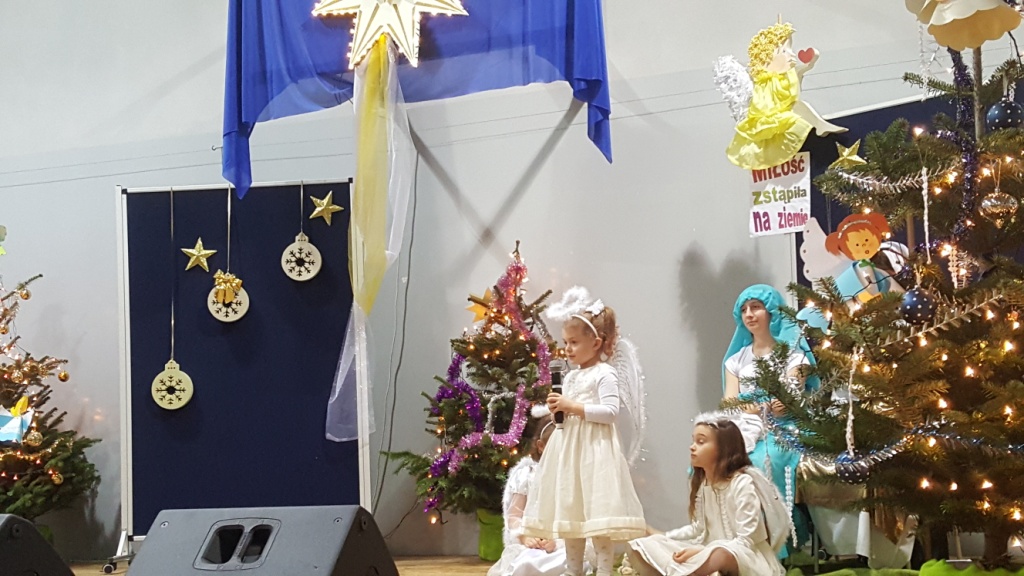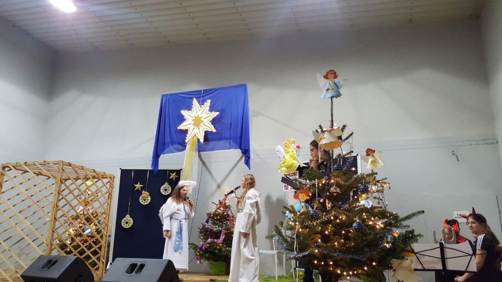 Tradycyjnie już, 6 stycznia w Hali Sportowej, odbyły się Jasełka, przygotowane przez uczniów naszej szkoły. Tematem tegorocznego przedstawienia było spotkanie aniołka, uwięzionego w klatce, z diablątkami. Aniołek podczas spotkania nauczył nowych znajomych jak się modlić, sprzątać, jak być dobrym człowiekiem - pełnym miłości, jak umieć przebaczać. Po wszystkich usłyszanych radach diablątka stały się aniołkami. Zmieniły się ich serca. Stały się dobre i piękne. Po obwieszczeniu radosnej nowiny, że Bóg narodził się w stajni, przybyli do niego pastuszek, tancerka, sportowiec, uczeń i para Murzynków. Każdy miał za co dziękować Panu Jezusowi i starał się pokazać otrzymane talenty.