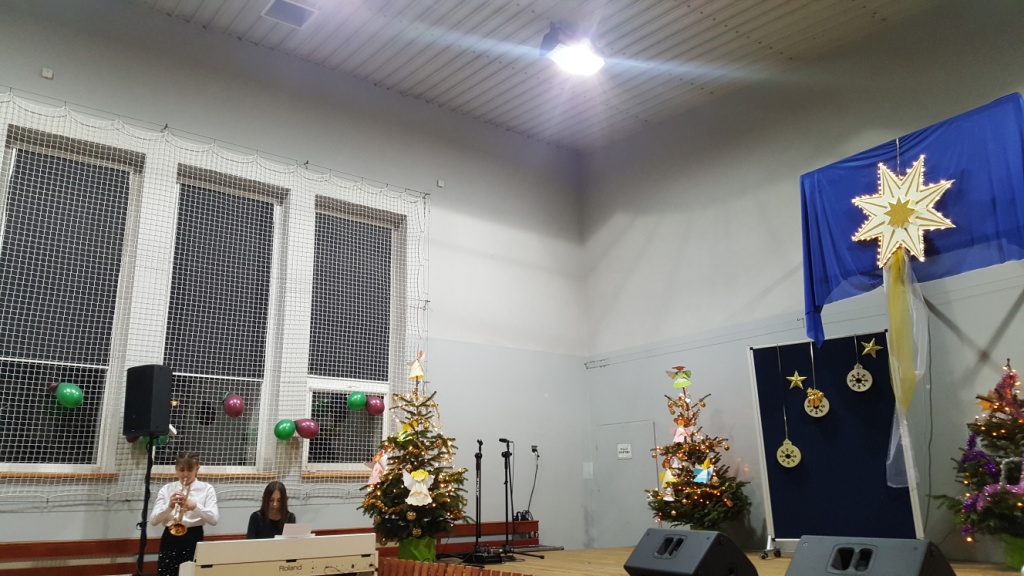 Dziękujemy wszystkim zaangażowanym w tę uroczystość. Przede wszystkim uczniom, którzy przyłożyli wszelkich starań, żeby wszystko się udało. Rodzicom, których pomoc podczas takich imprez jest nieoceniona. Dziękujemy też firmie ModusSound za nagłośnienie. Pani Sandrze Obruśnik za choinki, które tworzyły magiczny klimat Świąt. Panu Marcinowi Wiechoczkowi za pomoc przy dekoracji hali i przywieszanie dekoracji. Pani Krystynie Wieczorek i Panom wspomagającym za ustawienie sceny. Sandrze Rose - absolwentce, za wspaniały recital.