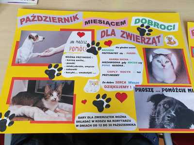 Kochani Uczniowie! Przed nami III edycja akcji "Otwórz serducho dla zwierza". Po raz kolejny w październiku mobilizujemy się, aby pomóc najbardziej potrzebującym zwierzakom ze schroniska w Lublińcu.