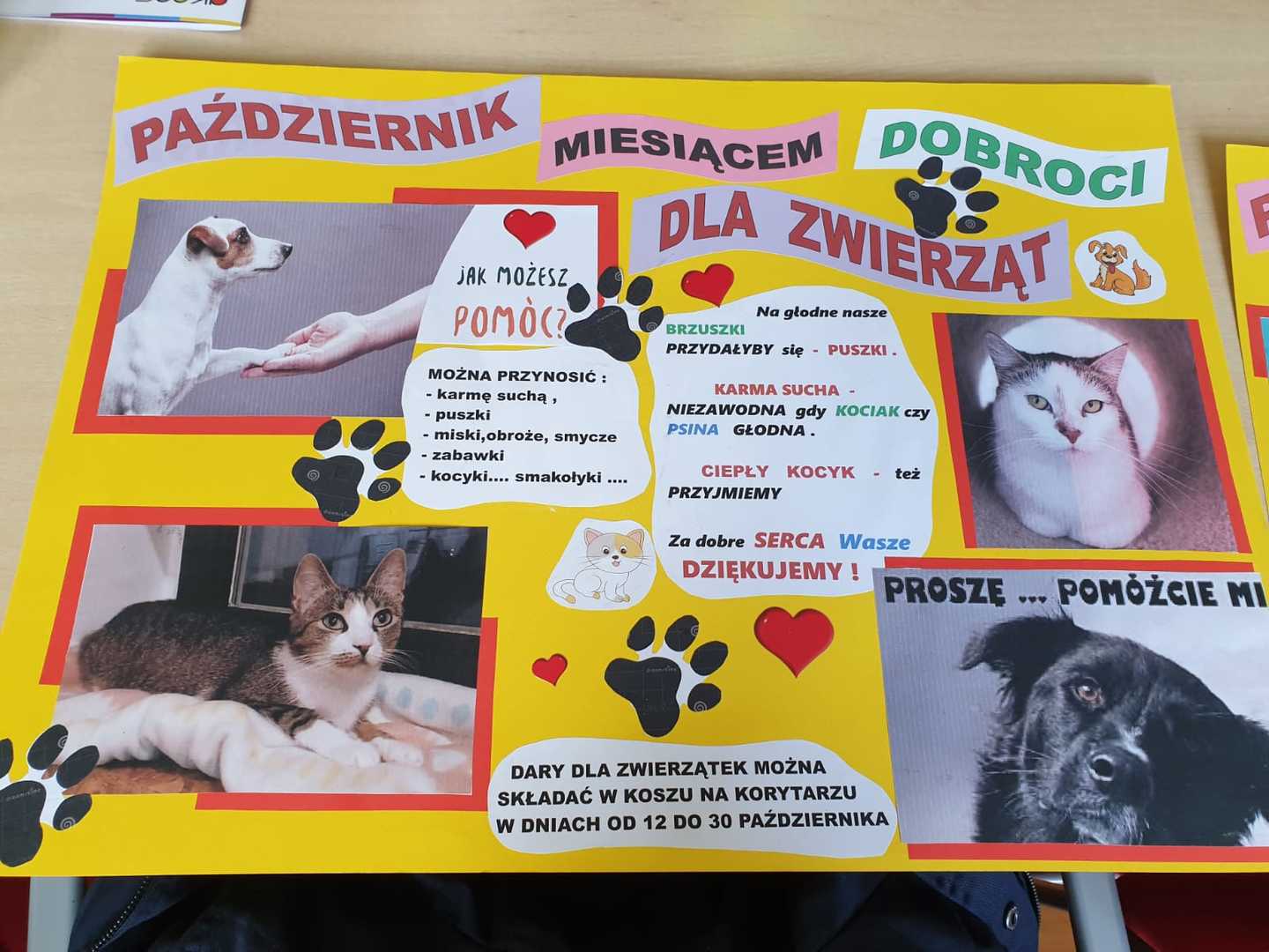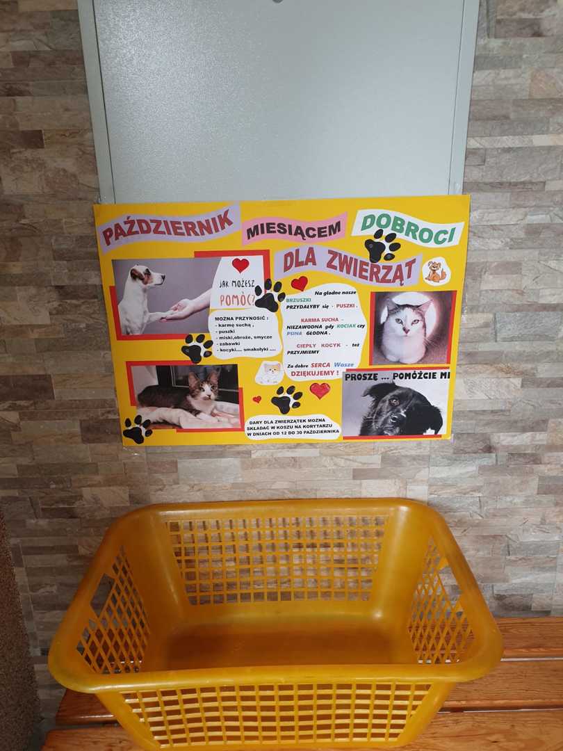 Kosze na prezenty dla zwierzaków znajdziecie w dniach 12-30 października na korytarzach szkolnych.